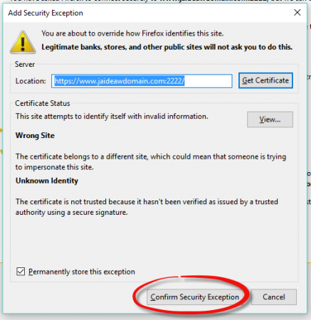 จากนั้นกดปุ่ม Confirm Security Exception ดังรูป
