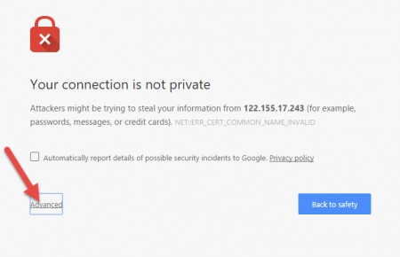 จากนั้นกดปุ่ม Proceed to ….. (unsafe) จุดคือ ชื่อเว็บของคุณ หรือ ip ของเว็บโฮสติ้ง
